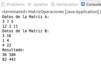 Para el código en java, en esta ocasión si es necesario pedir las filas y columnas en las dos matrices, y crear una tercera matriz con las filas de la primera matriz y las columnas de la segunda matriz.