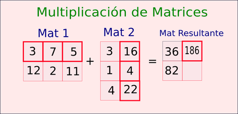 En la multiplicación de matrices cambia la forma de seguir las reglas, en esta ocasión se requiere que el número de columnas de la primera matriz sea igual al número de filas de la segunda matriz, o viceversa. En esta operación se multiplicará una matriz m x n por una matriz n x r, y la matriz resultante es de dimensión m x r.